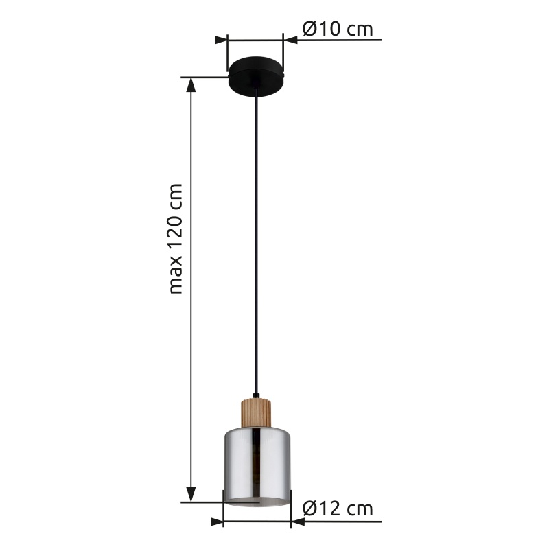 laelamp metall must matt, puit tumepruun, klaassuitsuvärvi, kaabel PVC must, Vähendatav kõrgus, ø: 120mm, K: 1200mm, v.a 1x E27 25W 230V