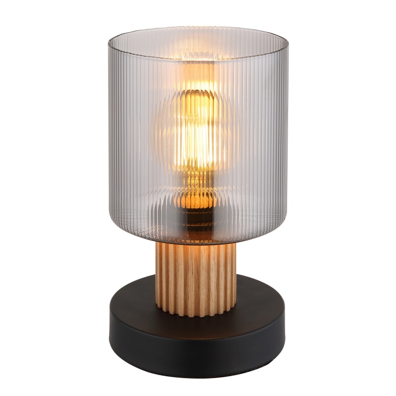 laualamp metall must matt, puit tumepruun, klaas suitsuvärvi, kaabel PVC must, klahvlüliti kaablil, ø: 120mm, K: 210mm, Kaabli pikkus 1500mm, v.a 1x E27 25W 230V