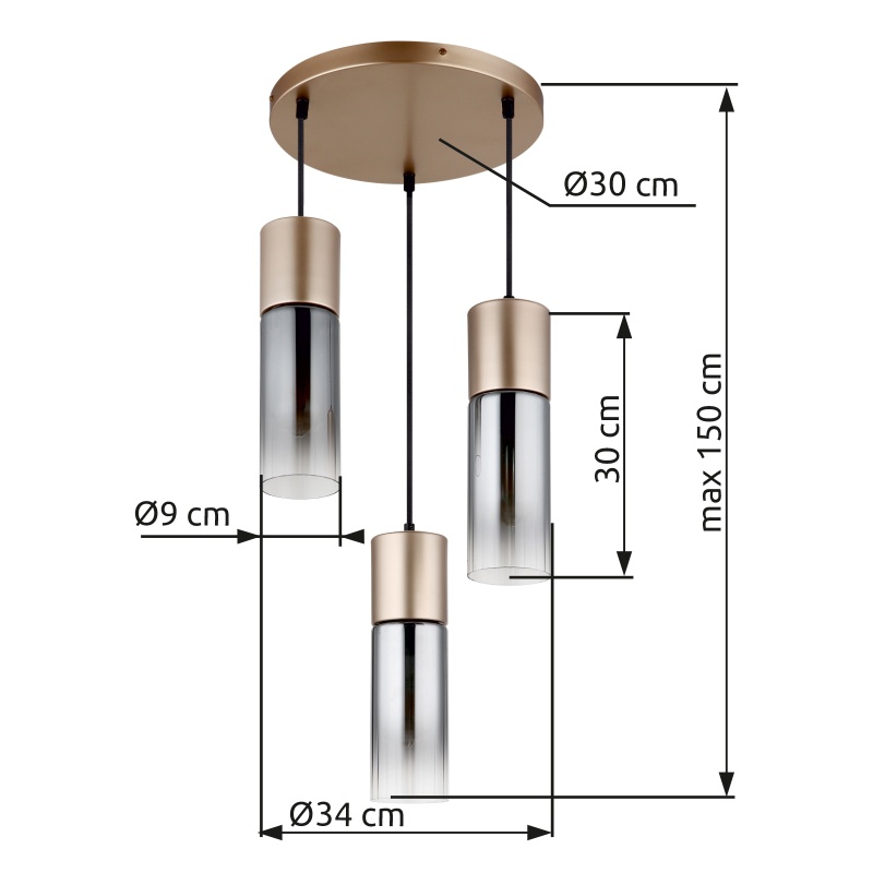 laelamp metallist cappuccino värvi matt, klaas suitsuvärvi, selge segu, kaabel Tekstiil must, Vähendatav kõrgus, ø: 340mm, K: 1500mm, v.a 3x E27 25W 230V
