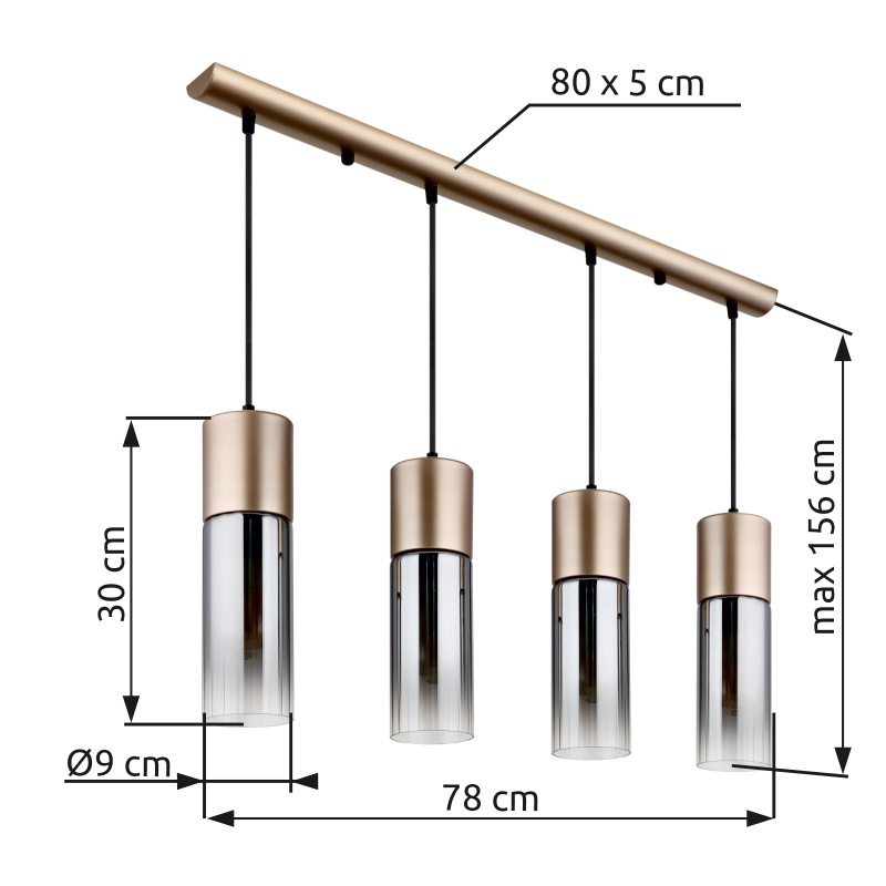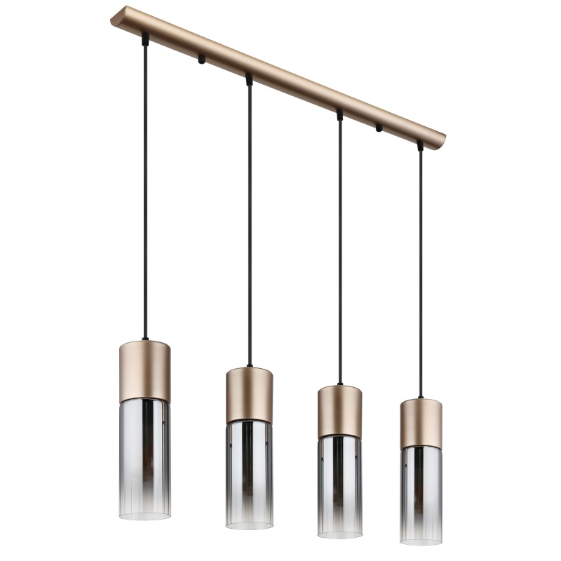laelamp metallist cappuccino-värvi matt, klaassuitsuvärvi, selge segu, kaabel Tekstiil must, vähendatav kõrgus, PxLxK: 800x90x1560mm, v.a 4x E27 25W 230V