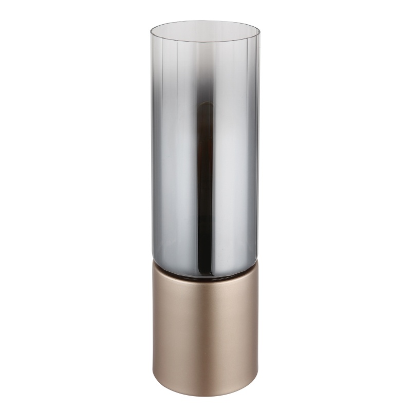 laualamp metallist cappuccino värvi matt, klaas suitsuvärvi, läbipaistev segu, kaabel Tekstiil valge, Touch On/Off, ø: 90mm, H: 300mm, Kaabli pikkus 1500mm, v.a 1x E27 25W 230V