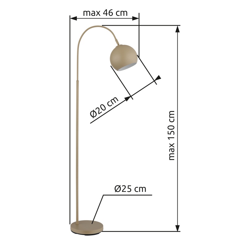 Põrandalamp metallist liivavärvi matt, metallliiv värvi matt, kaabel PVC must, Jalgpedaal kaablis, Liigutatav, PxLxK: 580x250x1500mm, Kaabli pikkus 1800mm, v.a 1x E27 60W 230V