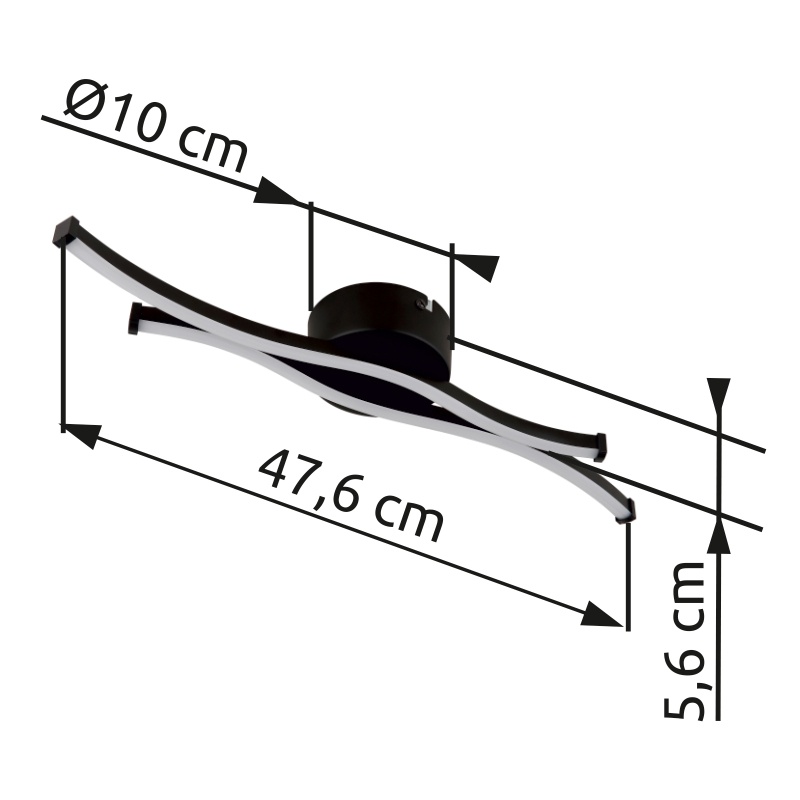 lae kerge metall must matt, alumiinium must matt, plastik valge, PxLxK: 476x100x56mm, sh LED 12W 230V, 1280lm allikas, 560lm väljund, 3000K