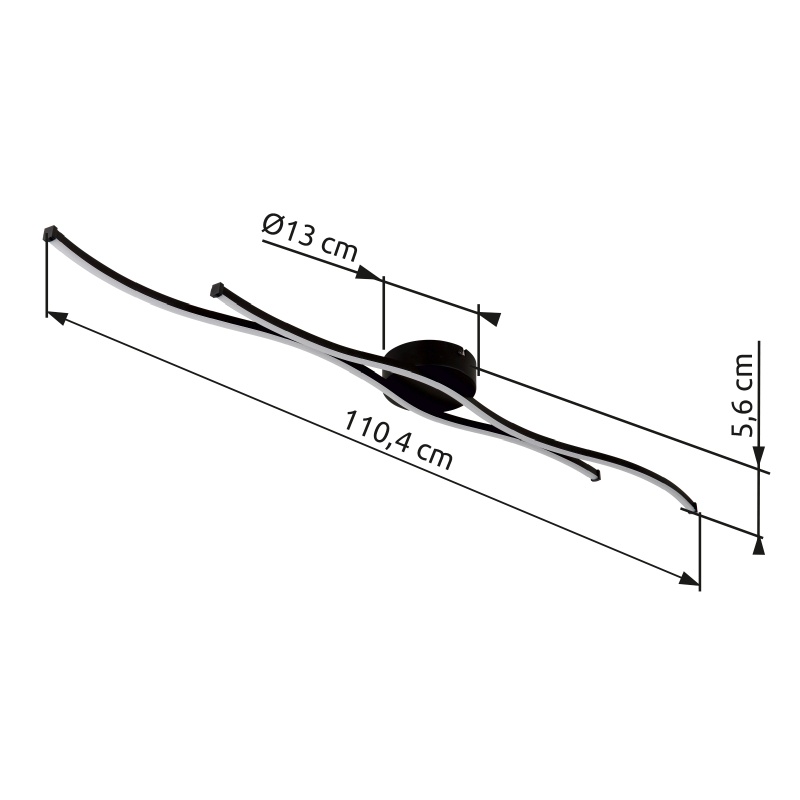 lae kerge metall must matt, alumiinium must matt, plastik valge, PxLxK: 1104x130x56mm, sh LED 30W 230V, 3550lm allikas, 1300lm väljund, 3000K