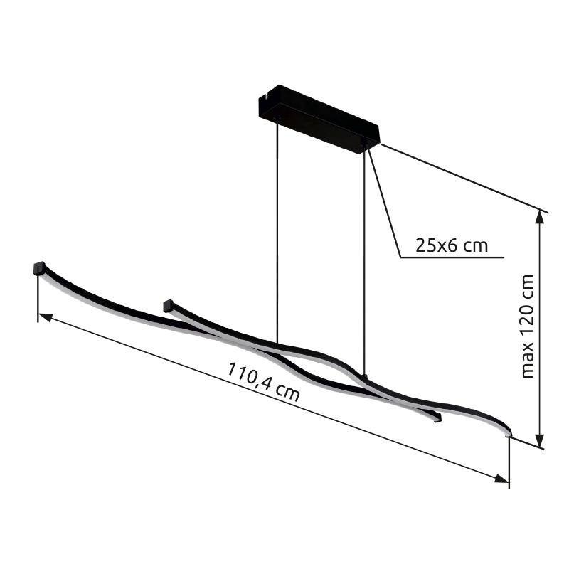 laelamp metall must matt, alumiinium must matt, plastik valge, kaabel PVC must, Vähendatav kõrgus, PxLxK: 1104x86x1200mm, sh LED 30W 230V, 3550lm Allikas, 1260lm väljund, 3000K