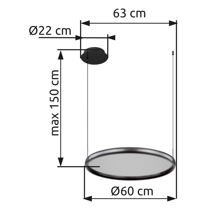 rippvalgusti metall/alumiinium must matt, akrüül satiinitud, hämardatav, mitmeastmeline seinalüliti, värvi fikseerimine, mälufunktsioon, öövalgus, vähendatav kõrgus, kaugjuhtimispult, PxLxK: 630x600x1500mm, LED 36W 230V, 400-4800lm allikas, 50-800lm väljund, CCT 2700-6000K