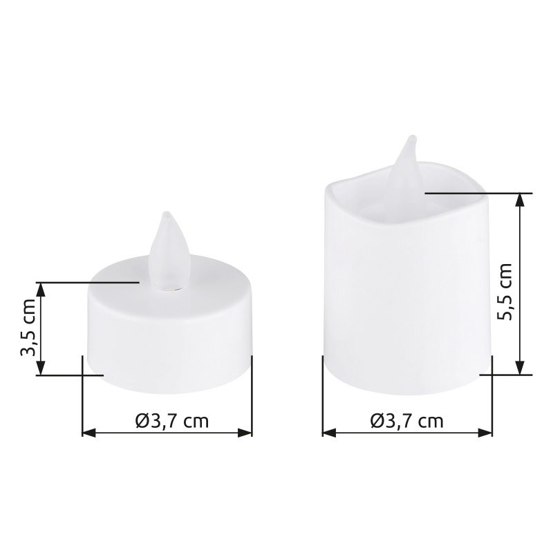 Dekoor plastikust valge, plastikust satiinitud, liuglüliti, Fire Effect, patarei kaasas 1x CR2032 210mAh, ø: 37mm, kogus komplekt 16Stk., sh LED 0.02W 3V, 4lm allikas, 3lm väljund, 2300K