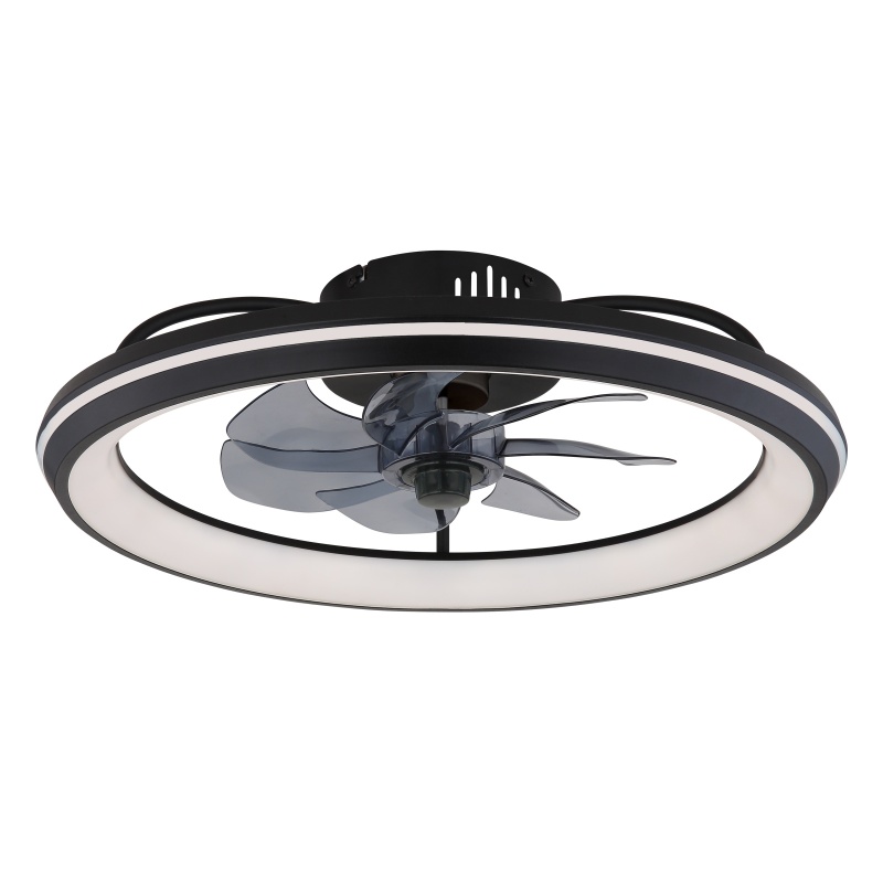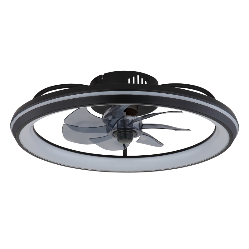 ceiling fan metal black matt, acrylic white, plastic smoke colored, Dimmable, Many Steps Wall Switch, Memory function, Night light, Timer, Remote Control, 30m², ø:500mm H:140mm, incl. LED 40W 230V, 460-5000lm Source, 188-2080lm Output, CCT 3000-6500K