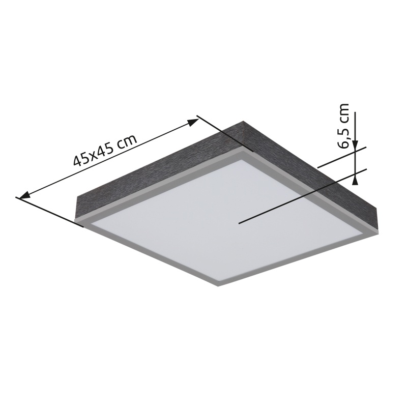 laevalgusti alumiinium hõbedane värv, MDF hall tume, plastik valge, PxLxK: 450x450x65mm, sh LED 24W 230V, 2500lm allikas, 1200lm väljund, 3000K