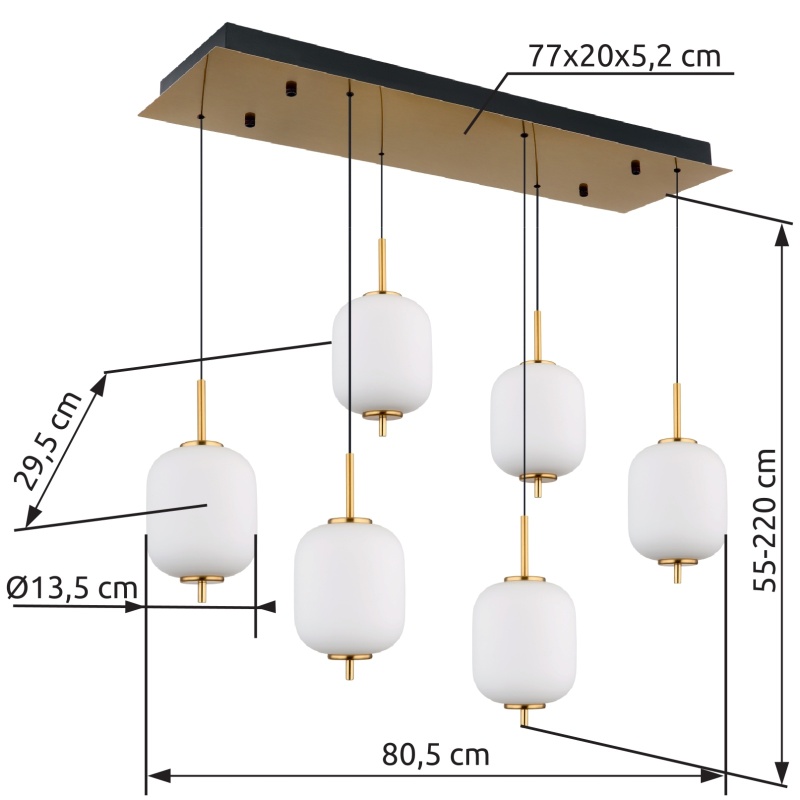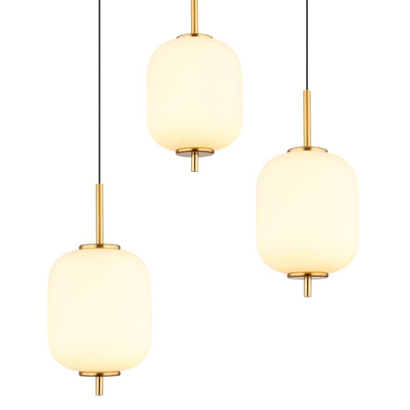 pendant lamp metal brass-coloured, metal black matt, glass white, cable PVC black, Adjustable height, LxWxH: 805x295x2200mm, incl. LED 40W 230V, 4650lm Source, 2176lm Output, 3000K