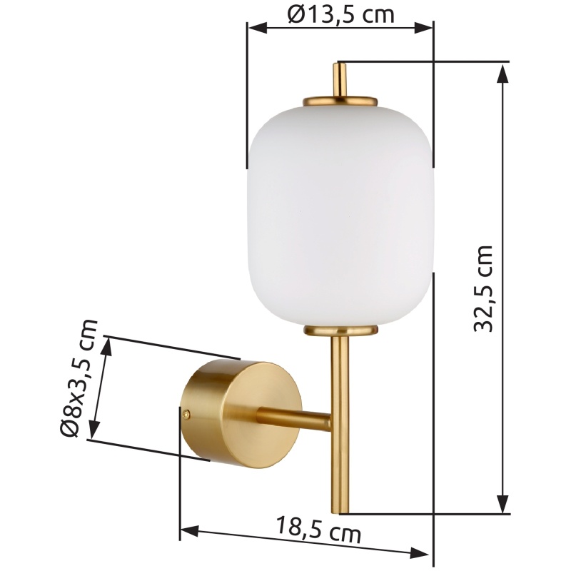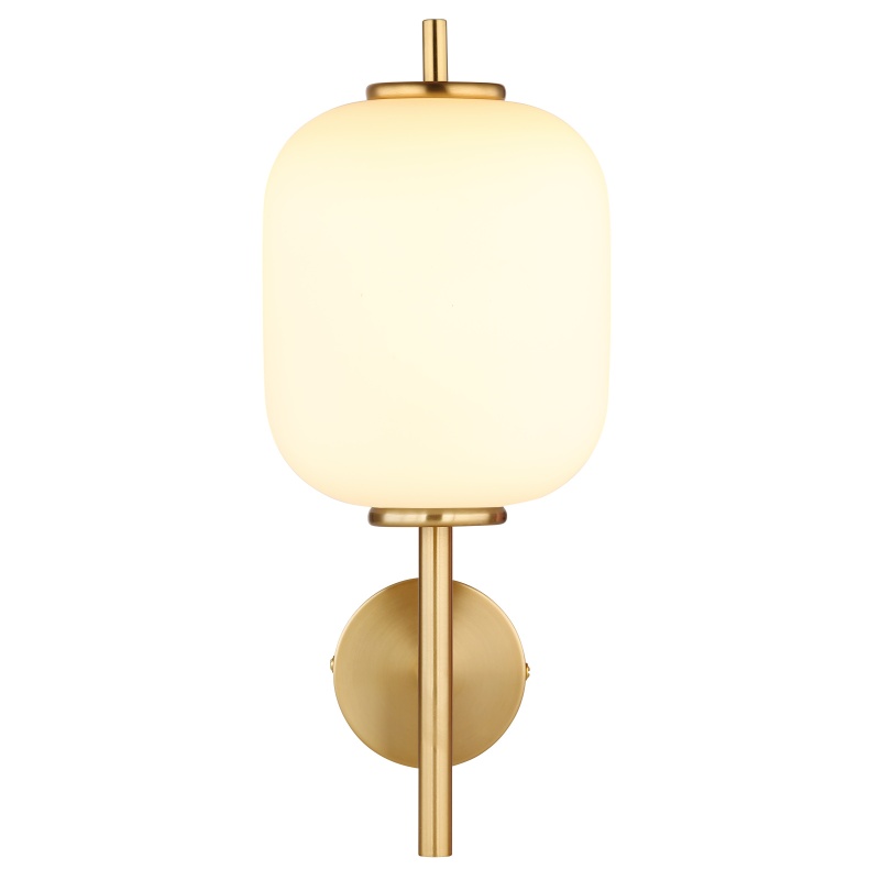 wall light metal brass-coloured, glass white, Light Shine Direction: up, WxH: 135x325mm, AL: 185mm, incl. LED 7W 230V, 779lm Source, 606lm Output, 3000K