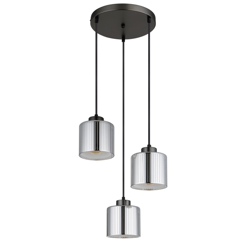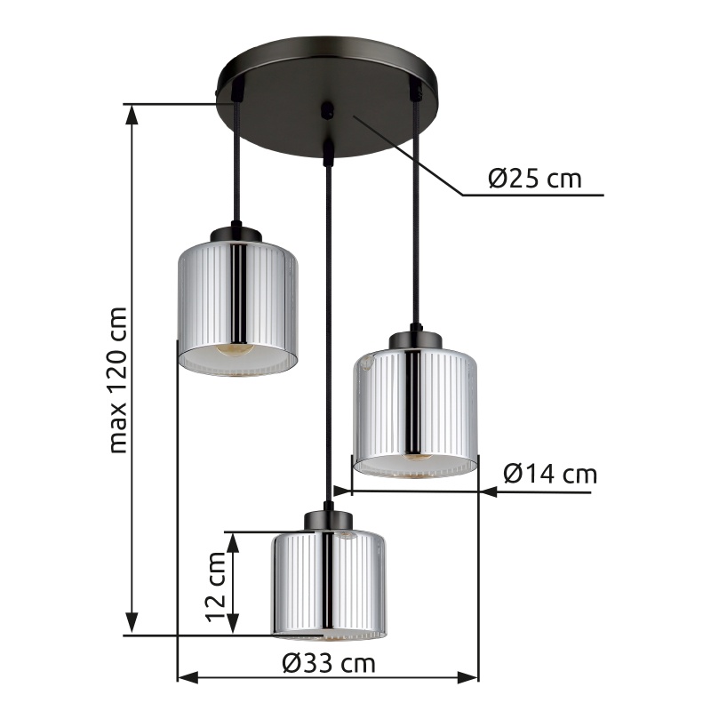 laelamp metallist püstolmetallist matt, klaas kroomitud, klaas valge, kaabel Tekstiil must, Vähendatav kõrgus, ø: 330mm, K: 1200mm, v.a 3x E27 60W 230V