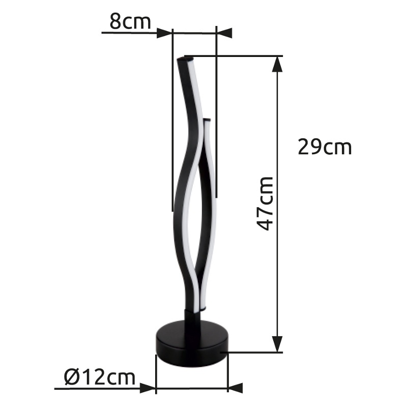 Laualamp metallist must matt, plastik valge, alumiinium must matt, kaabel PVC must, klahvlüliti kaablil, vasar: 120mm, H: 470mm, kaabli pikkus 1500mm, sh. LED 12w 230V, 1430lm Allikas, 460lm väljund, 3000K