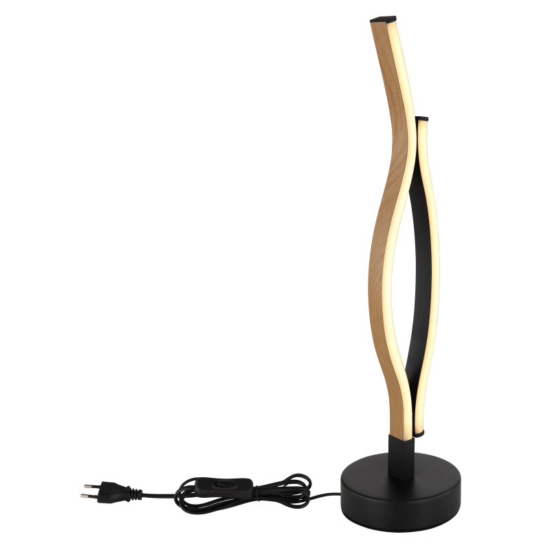 GERONIMO seeria laualamp on valmistatud matt-mustaks värvitud metallist ja sellel on opaalvärvi plastist hajuti, millel on puidust inspireeritud sisekujundus. Alus ja lambivari on valmistatud alumiiniumist, mis on värvitud mattmustaks. Kaabel on ka musta värvi, valmistatud PVC-st, juhtimiseks kaablil on klahvlüliti. Lambi diameeter 120 mm, lambi Kõrgus 470 mm.komplekti kuuluva Led-lambi võimsus on 12 W pingel 230 V, valgustugevus 1 430 lm (allikas) ja värvitemperatuur 3 000 K. tegelik valgustugevus on 460 lm (väljund).