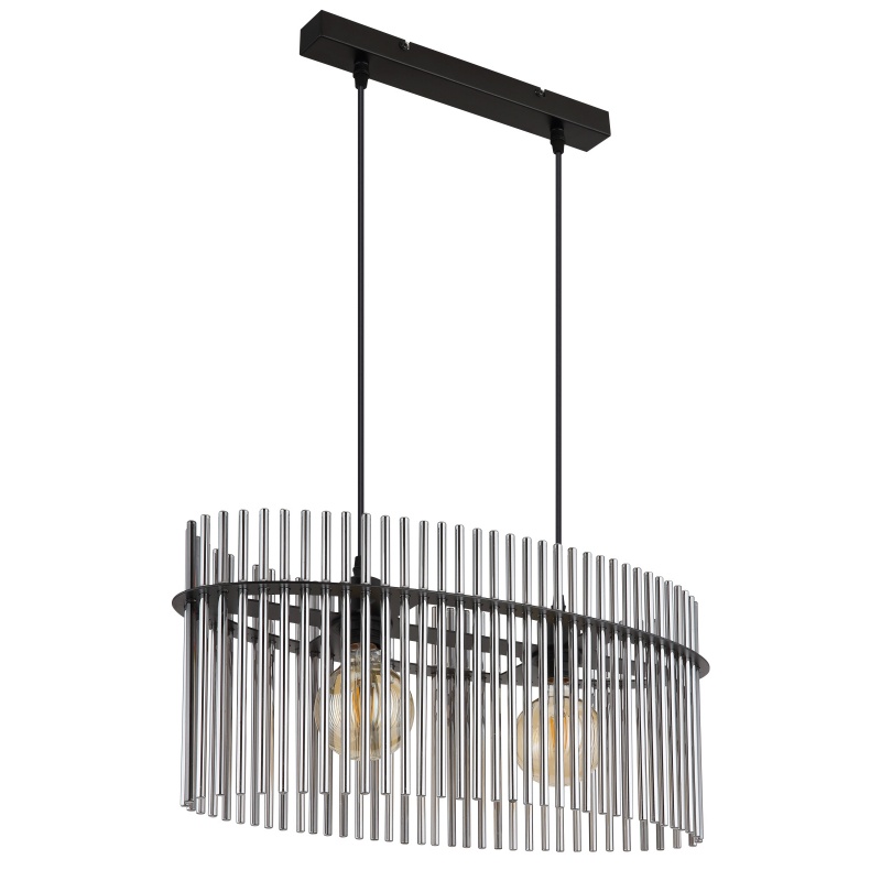 laelamp metallist must matt, klaaspulgad suitsuvärvi, kaabel PVC must, vähendatav kõrgus, PxLxK: 600x230x1400mm, v.a 2x E27 60W 230V