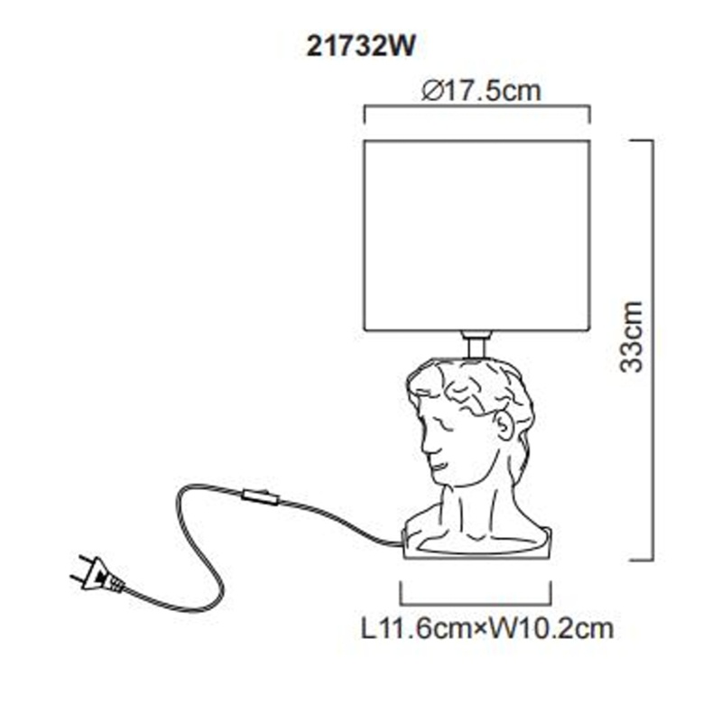 laualamp keraamika valge, tekstiil valge, kaabel PVC valge, klahvlüliti kaablil, ø: 175mm, H: 330mm, Kaabli pikkus 1300mm, v.a 1x E14 40W 230V