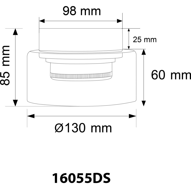 laevalgusti alumiinium must harjatud, klaassuitsuvärvi, ø: 130mm, H: 85mm, sh 1x GX53 LED 6W 230V, 400lm allikas, 270lm väljund, 1800K, ink. LED pirn 10162