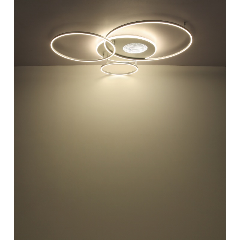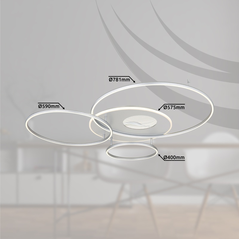 Elegantne ristkülikukujuline ceiling light ALUMINIUM BRUSHED SILVER laevalgusti avaldab muljet oma kaasaegse disainiga, millel on 4 rõngast, mis on paigutatud üksteisest eemale. Hõbedane harjatud alumiiniumist korpus ja kolmemõõtmelise peegliefektiga opaalakrüülist varjund annavad sellele lambile elegantse ilme. Kaasasoleva kaugjuhtimispuldi abil saate valgustust eraldi juhtida, Valgus on reguleeritav ja sellel on heleduse reguleerimiseks seinalüliti abil mitu taset. Lisaks saab värve fikseerida ja mälufunktsioon tagab soovitud seaded. Öise valgustuse režiim täiendab pakkumist. ALUMINIUM BRUSHED SILVER laevalgusti, mille pikkus on 1264 mm ja laius 1053 mm, võimsus 4599 luumenit ja CCT Seaded vahemikus 2700K kuni 6500K, tagab ereda ja atmosfäärilise valgustuse igas toas.