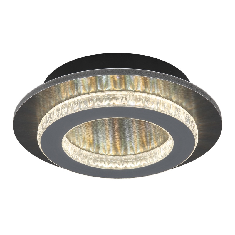 Lagi kerge metall must matt, plastik antratsiit matt, plastkristallid läbipaistev, plastik helehall matt, Paljude sammude seinalüliti, Värvikinnitus, Mälufunktsioon, ø: 200mm, H: 55mm, sh LED 12W 230V, 1400lm allikas, 470lm väljund, CCT 3000/4000/6500K