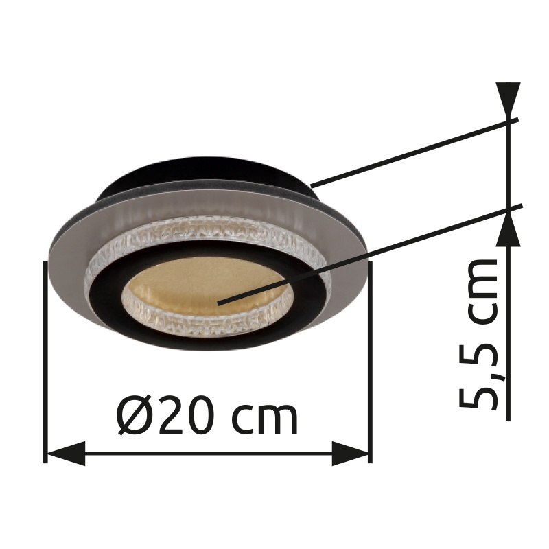 lagi kerge metall must matt, plastikust kuldsed värvid matt, plastkristallid selged, plastik must matt, Paljude sammude seinalüliti, Värvi fikseerimine, Mälufunktsioon, ø: 200mm, H: 55mm, sh LED 12W 230V, 1400lm allikas, 470lm väljund, CCT 3000/4000/6500K