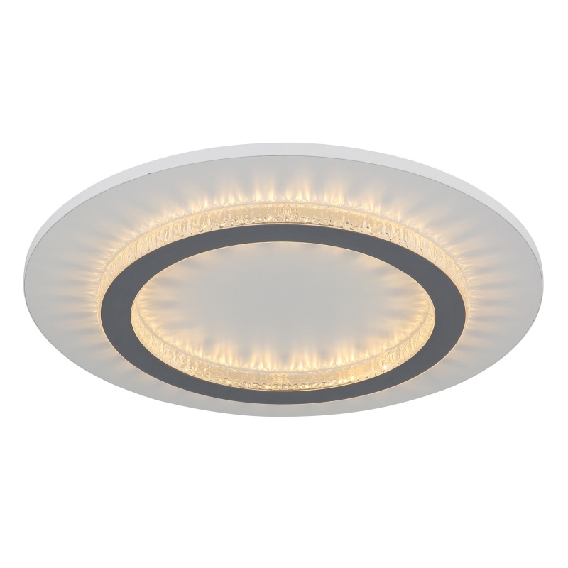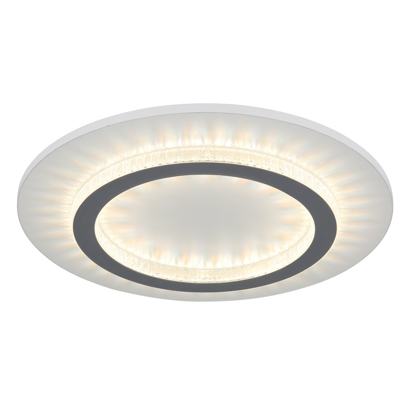 Lagi kerge metall valge matt, plastik valge matt, plastkristallid selge, plastik helehall matt, Paljude sammude seinalüliti, Värvi fikseerimine, Mälufunktsioon, ø: 350mm, H: 55mm, sh LED 24W 230V, 3300lm Allikas, 920lm väljund, CCT 3000/4000/6500K