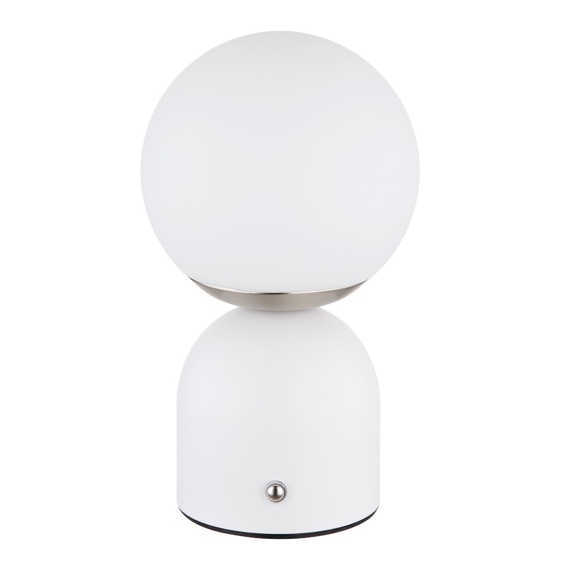 table lamp metal white/nickel matt, plastic white, Touch On/Off, Dimmable, Continuous Touch Dimmer, Color fixing, USB charger cable incl., Accu incl. CR18650 1800mAh 3.7V, ø: 120mm H: 210mm, LED 2.5W 5V, 243lm Source, 189lm Output, CCT 2700/6500/4000