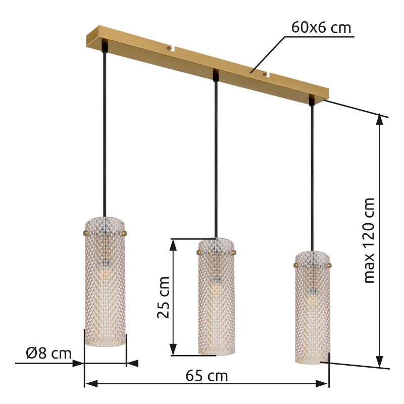 laelamp metallist kuldset värvi, klaas merevaigukollane, kaabel Tekstiil must, Vähendatav kõrgus, PxLxK: 650x80x1200mm, v.a 3x E14 40W 230V