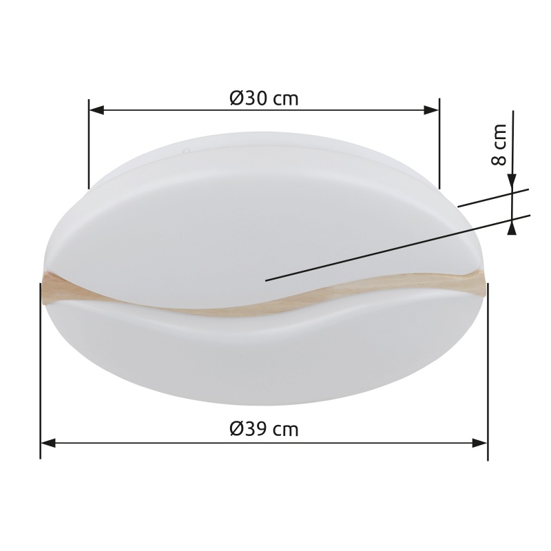 lagi kerge metall valge, plastik valge, puitpruun, Many Steps seinalüliti, värvi fikseerimine, mälufunktsioon, ø: 390mm, H: 80mm, sh LED 24W 230V, 2790lm allikas, 1850lm väljund, CCT 3000/6000/4200K