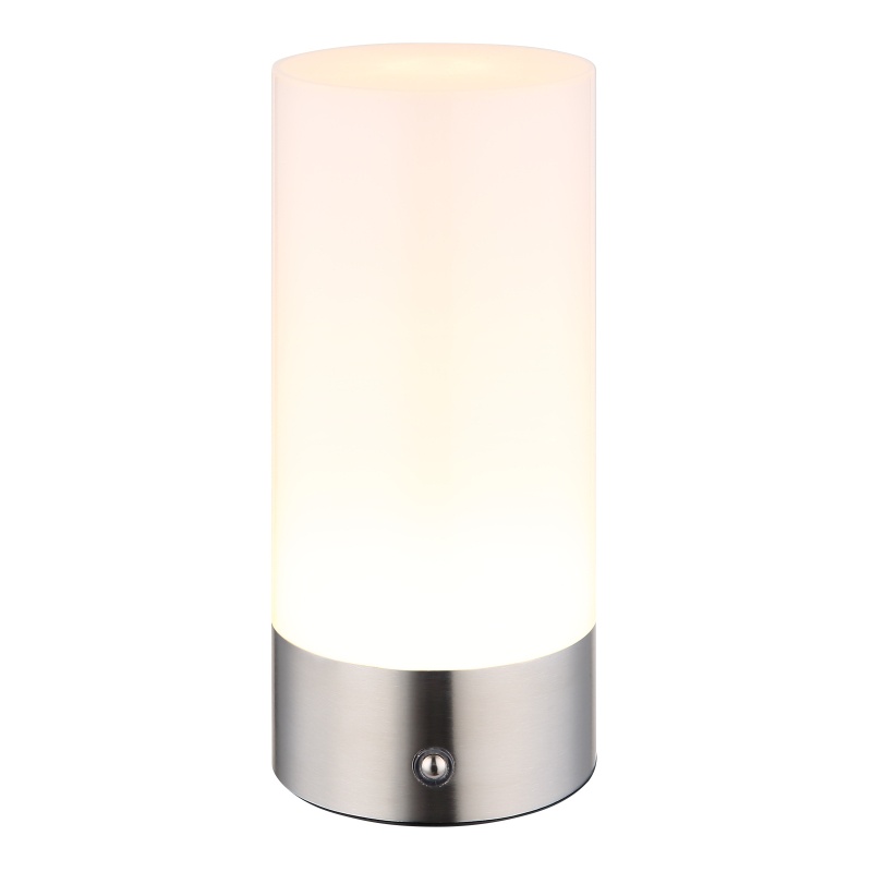 laualamp metallist nikkel matt, plastikust valge kaabel PVC valge, puutetundlik sisse/väljas, puutetundlik dimmer, RGB värvimuutus / fikseerimine, v.a adapter, USB-C-USB-C, IP44, ø: 88mm, H: 190mm, kaabli pikkus 1000mm, sh RGBW LED 1.8W 230V, 160lm allikas, 100lm väljund, 2900K, värviline