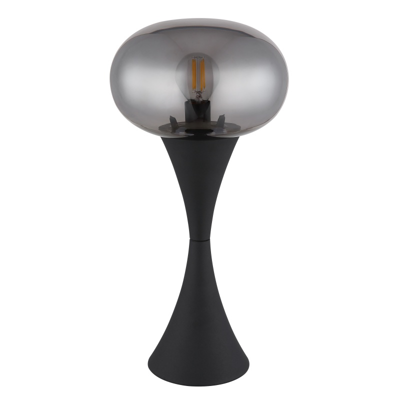 laualamp metall must matt, klaas suitsuvärvi, kaabel PVC must, klahvlüliti kaablil, ø: 180mm, K: 369mm, Kaabli pikkus 1500mm, v.a 1x E14 25W 230V