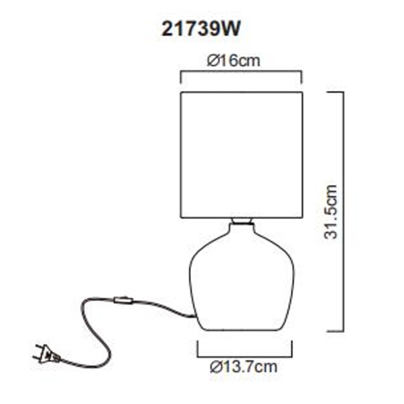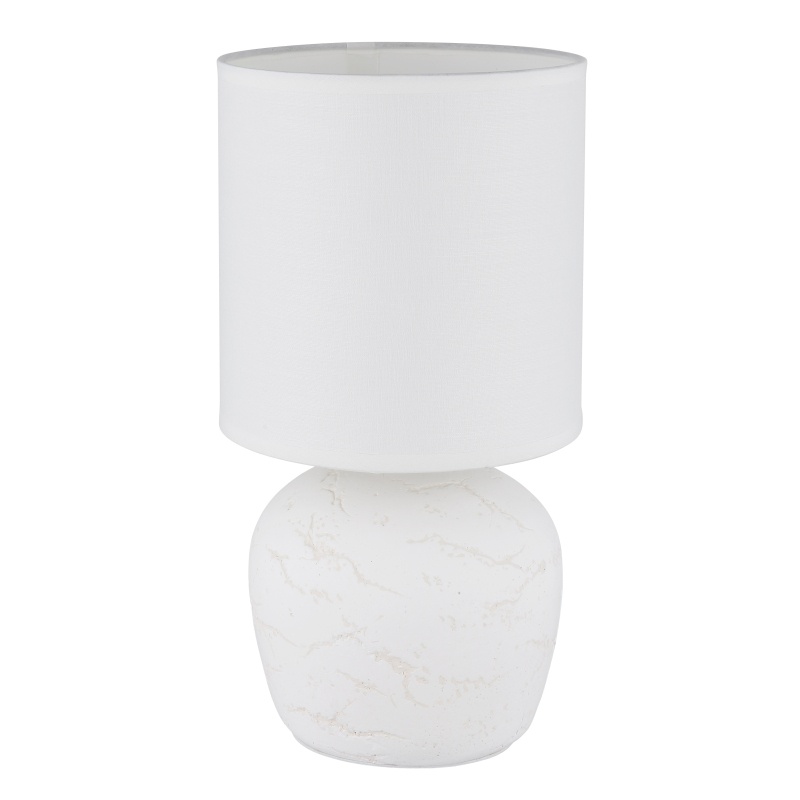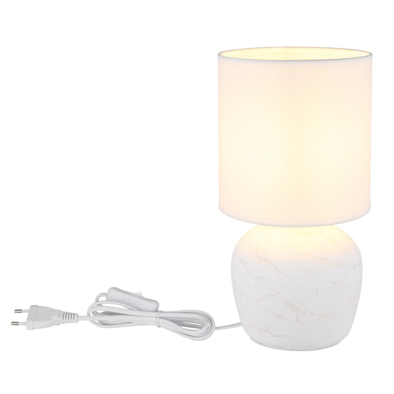 laualamp keraamika valge, tekstiil valge, kaabel PVC valge, kaabli klahvlüliti, ø: 160mm, H: 315mm, Kaabli pikkus 1300mm, v.a 1x E14 40W 230V