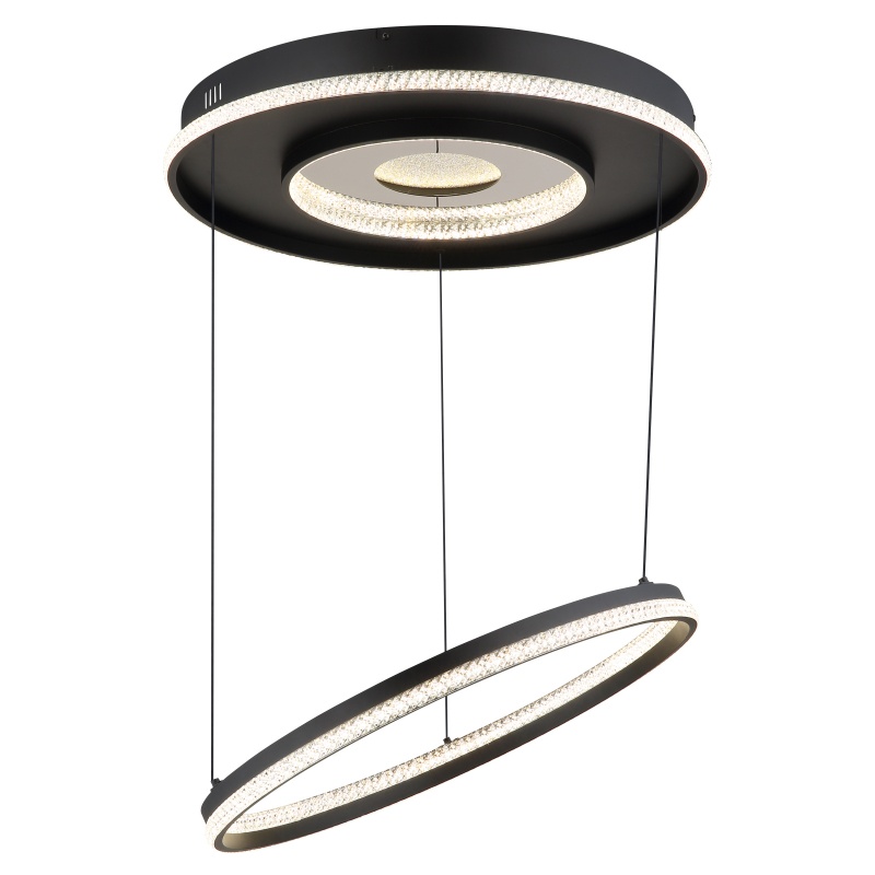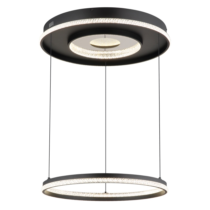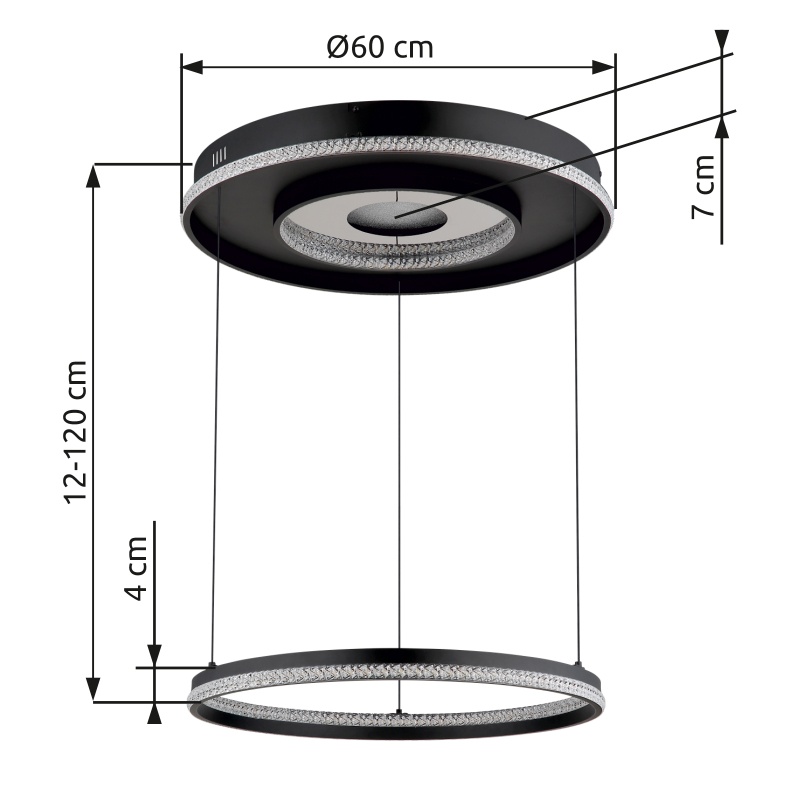 laelamp metall / alumiinium must matt, plastkristallid selged, plastikust peegelkristalli efekt, hämardatav, mitmeastmeline seinalüliti, mälufunktsioon, taimer, reguleeritav kõrgus, kaugjuhtimispult, ø: 600mm, H: 1200mm, LED 54W 230V, 300-2035lm väljund, CCT 2700-6500K