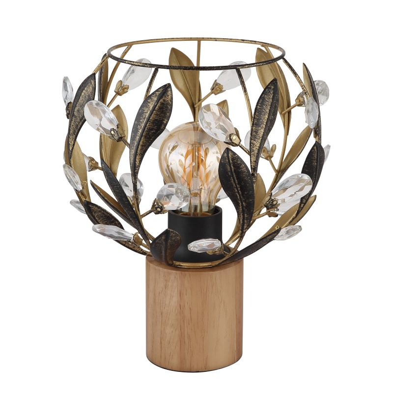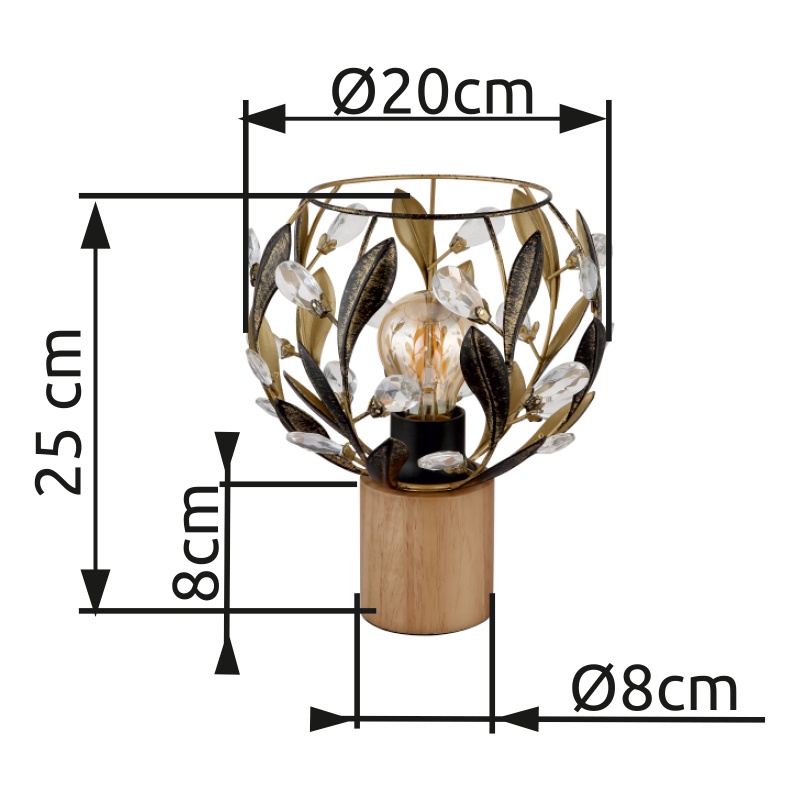 laualamp puitpruun, metall kuldsed värvid, must patineeritud, akrüülkristallselge, kaabel PVC must, klahvlüliti kaablil, ø: 200mm, H: 250mm, Kaabli pikkus 1500mm, v.a 1x E27 40W 230V