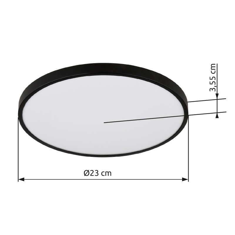 laevalgusti plastikust must matt, plastik valge, Ø: 230mm, H: 35.5mm, sh LED 15W 230V, 1300lm Allikas, 650lm väljund, 4000K