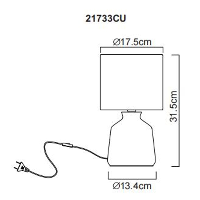 laualamp keraamika karrivärvi, tekstiil karrivärvi, kaabel PVC valge, klahvlüliti kaablil, ø: 175mm, H: 315mm, Kaabli pikkus 1300mm, v.a 1x E14 40W 230V
