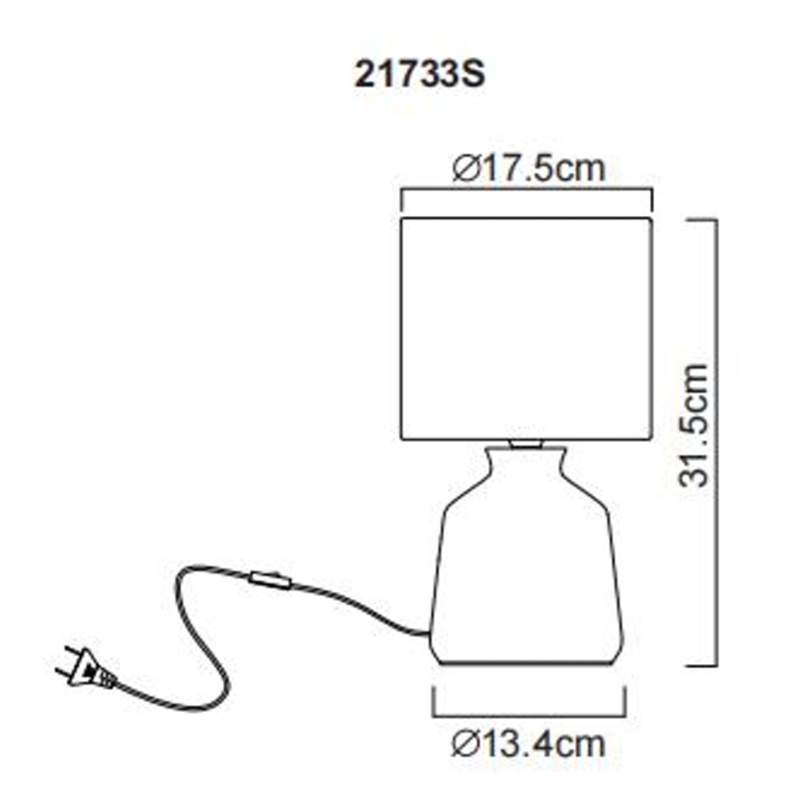 laualamp keraamika must, tekstiil must, kaabel PVC must, klahvlüliti kaablil, ø: 175mm, H: 315mm, Kaabli pikkus 1300mm, v.a 1x E14 40W 230V