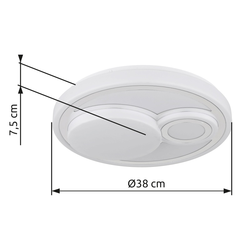 Lagi kerge metall valge matt, plastik valge, plastikust kroomitud, Paljude sammude seinalüliti, Värvi fikseerimine, Mälufunktsioon, ø: 380mm, H: 75mm, sh LED 24W 230V, 2500lm allikas, 1200lm väljund, CCT 2700/4000/6500K