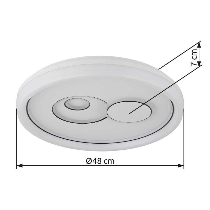 Lagi kerge metall valge matt, plastik valge, akrüülvalge, plastik must, Paljude sammude seinalüliti, Värvi fikseerimine, Mälufunktsioon, ø: 490mm, H: 70mm, sh LED 36W 230V, 4090lm Allikas, 2686lm väljund, CCT 3000/4000/6500K