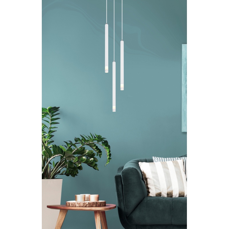 laelamp metall valge matt, metall valge matt, akrüül satiin, läbipaistev, kaabel PVC valge, Vähendatav kõrgus, ø: 240mm, K: 1200mm, v.a 3x G9 LED 4W 230V