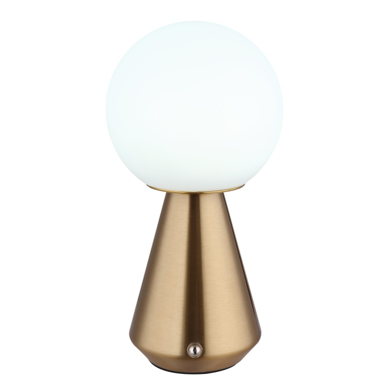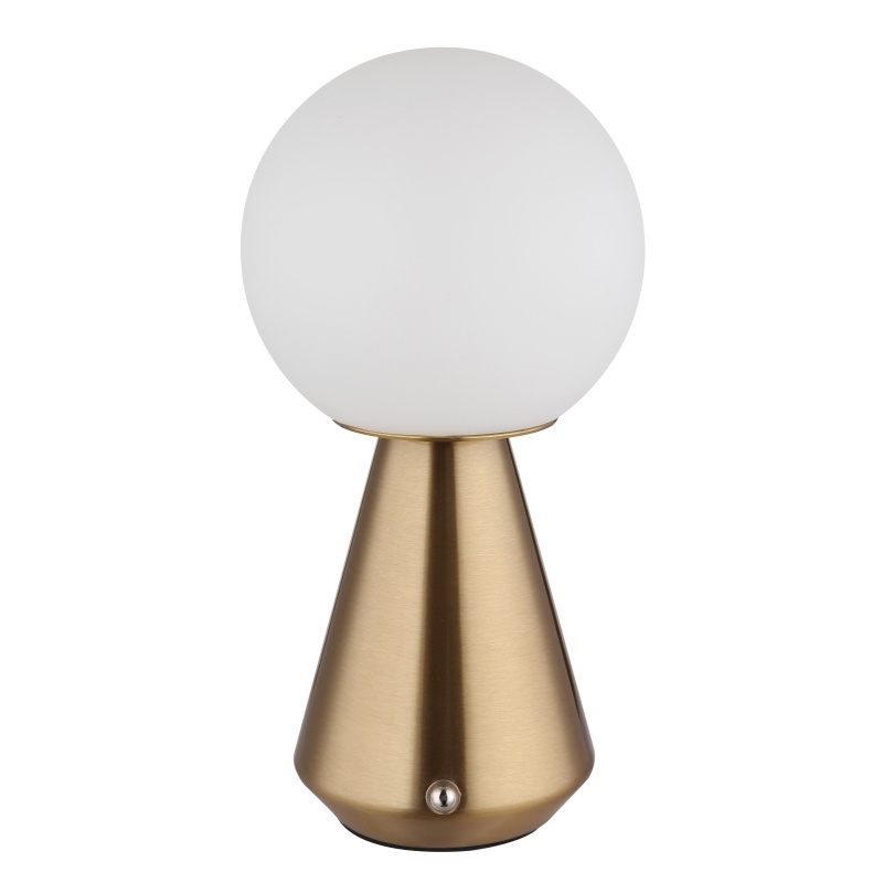 laualamp metallist vaskvärvi matt, akrüülvalge, kaabel PVC valge, puutetundlik sisse/väljas, pidev puutetundlik dimmer, värvi fikseerimine, mälufunktsioon, v.a adapter, USB-A 2.0-USB-C, IP41, ø: 120mm, H: 235mm, LED 1.5W 230V, 160lm allikas, 140lm väljund, CCT 3000/6500 / 4500K